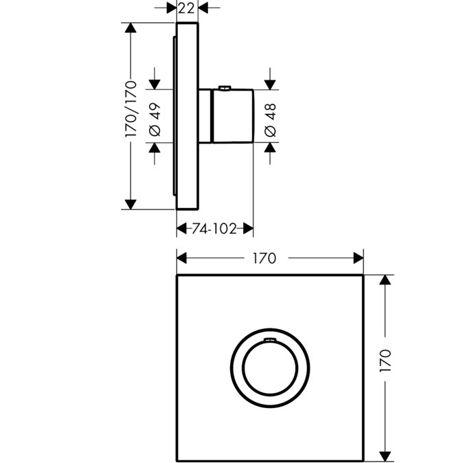 Термостат Hansgrohe Axor ShowerSelect - відмінною рисою є кнопка управління Select - завдяки якій, Ви зможете одним клацанням увімкнути або вимкнути подачу води або змінити тип струменя.