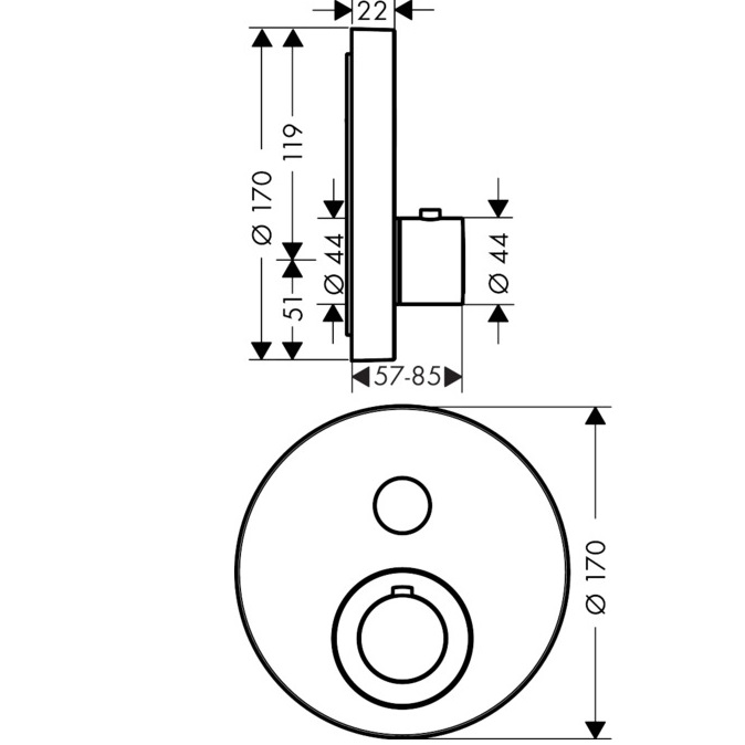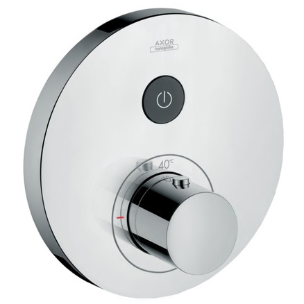 Термостат Hansgrohe Axor ShowerSelect - відмінною рисою є кнопка управління Select - завдяки якій, Ви зможете одним клацанням увімкнути або вимкнути подачу води або змінити тип струменя.