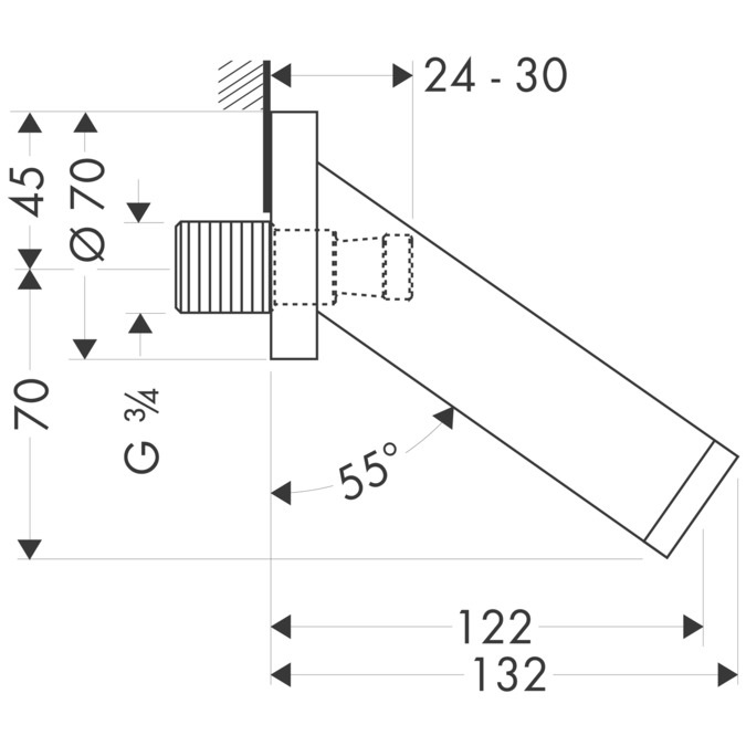 - Настінний монтаж, виступ 122 мм