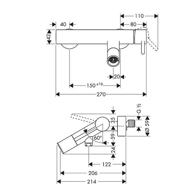 - Ширина 270 мм, виступ 214 мм, витрата води 22 л/хв.
