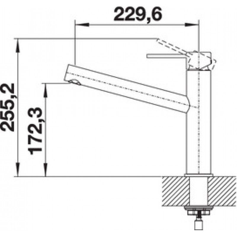 загальна висота змішувача 255 мм, поворотний вилив 130°: висота 172 мм, довжина 230 мм
