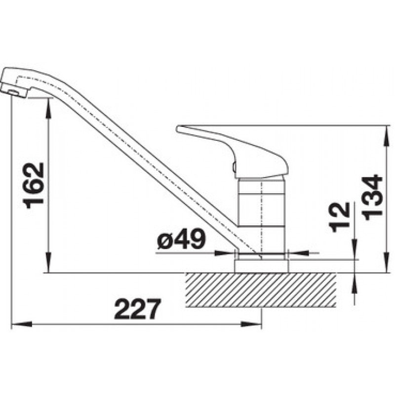 - загальна висота 134 мм, поворотний вилив 360°: висота 162 мм, довжина 227 мм