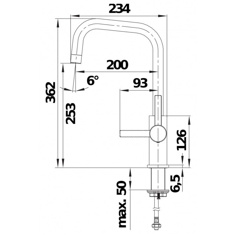 загальна висота змішувача 362 мм, поворотний вилив 190°: висота 253 мм, довжина 234 мм