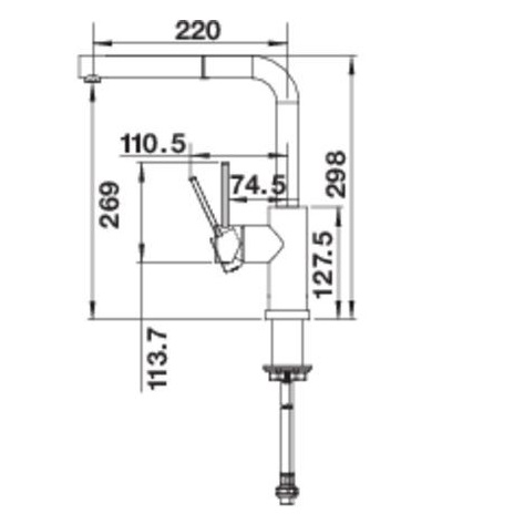 загальна висота змішувача 298 мм, поворотний висувний вилив 190°: висота 269 мм, довжина 220 мм, шланг висувного виливу з нейлоновим обплетенням