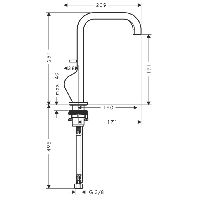 - Витрата води 5 л/хв., звичайний струмінь, положення ручки збоку: нижня сторона корпусу (не підходить для кухонної мийки)