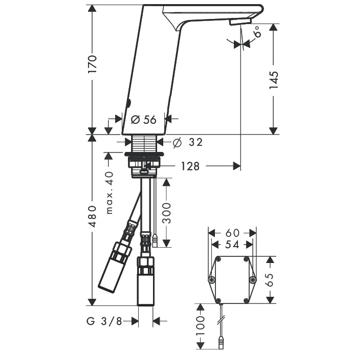 - Загальна висота 170 мм, литий Г-вилив: висота 145 мм, довжина 128 мм, ComfortZone 150