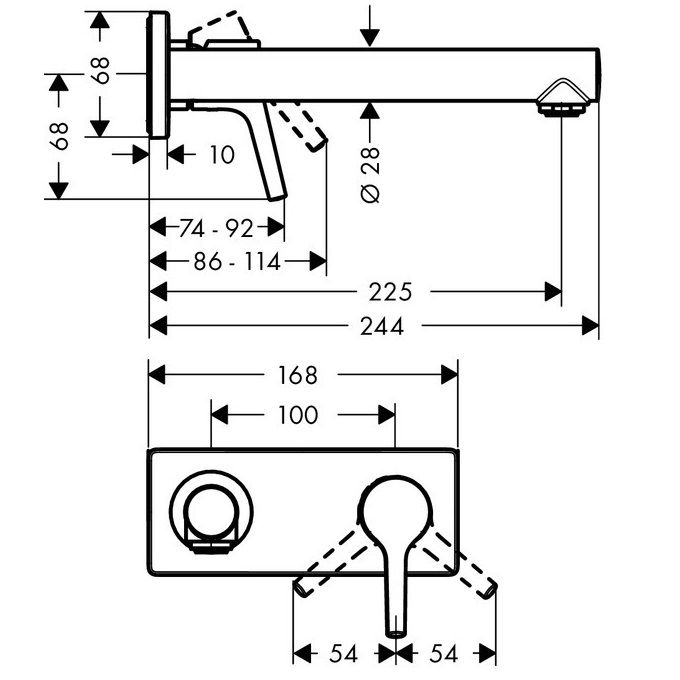 Змішувач для раковини настінний Hansgrohe Тalis S винос виливу 225 мм