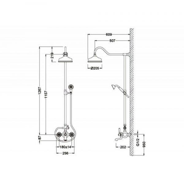 - верхній душ Ø 205 мм + кронштейн настінний, підключення 1/2G, 1-но режимний, шланг 1500 мм