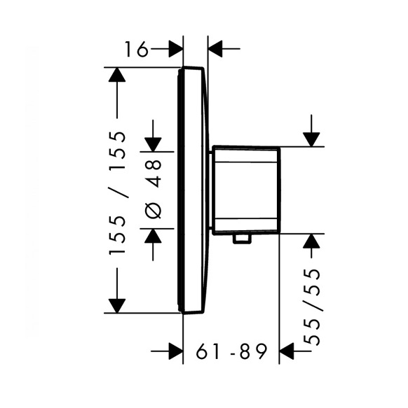 - Корпус - латунь, колір - хром, загальні розміри 155 х 155 мм