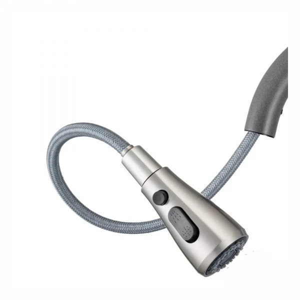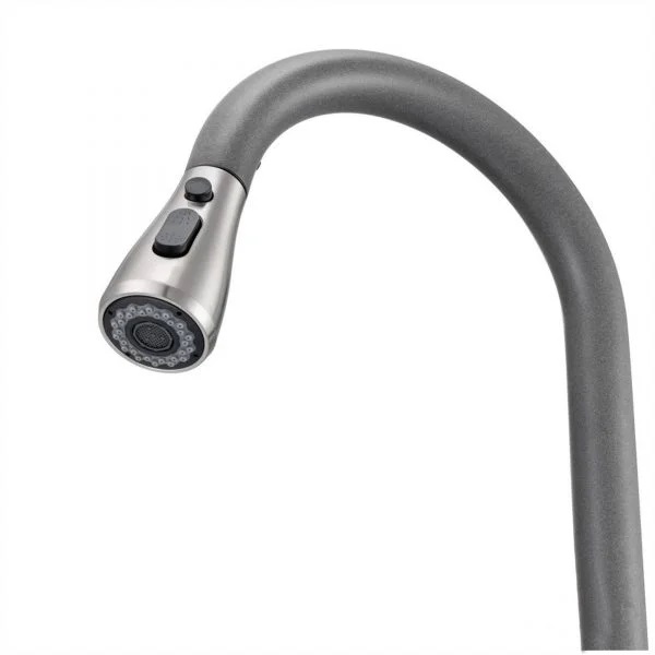 - висувний вилив (шланг 700 мм), на аераторі є важіль, яким можна обирати різні струмені та ступінь розсіювання води, а також - кнопка, щоб зупинити потік води та не намокнути, поки обираєте потрібний ракурс розташування виливу