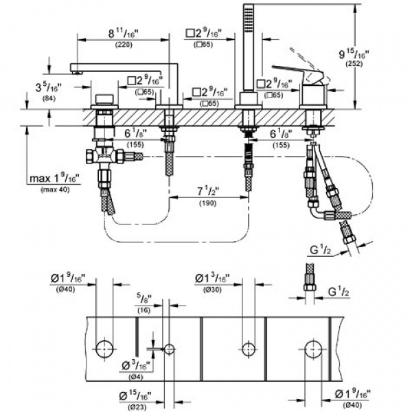- Ручний душ Euphoria Cube 9.4 л/хв. (27 699 000), металевий шланг для душу 2000 мм (48018), підключення для душового шланга із захистом від зворотного потоку