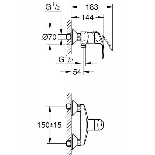 - Загальна висота змішувача 146/184 мм, литий вилив: висота 56 мм