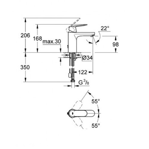 - Загальна висота 168/206 мм, литий вилив висота 98 мм, довжина 122 мм