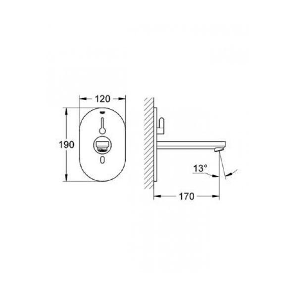 - Накладна панель з латуні, литий вилив довжиною 170 мм, аератор 9 л/хв.