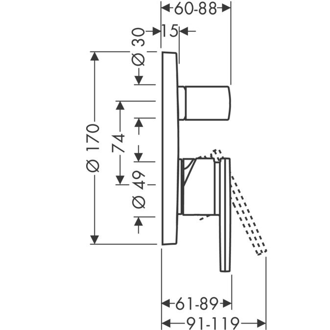 Змішувач для ванни і душу Hansgrohe Axor Citterio 170 мм