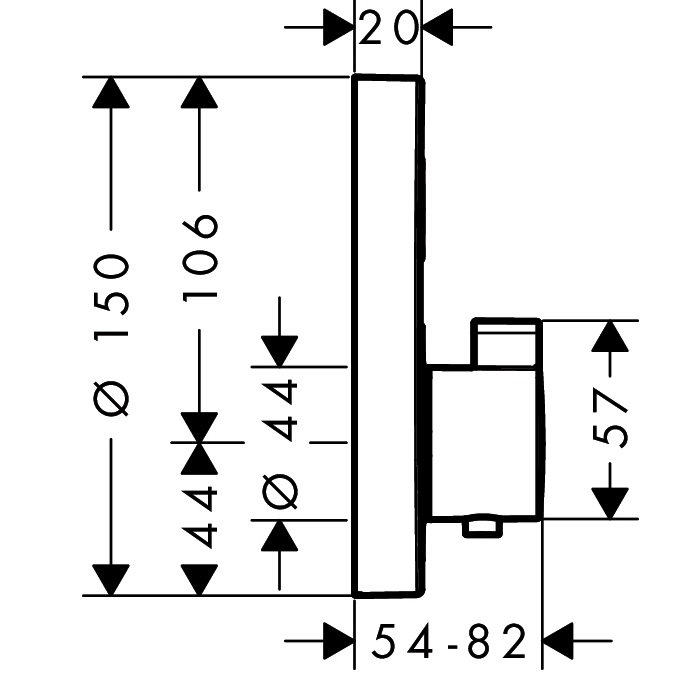 - Корпус - латунь, колір - хром, загальні розміри 150 х 150 мм