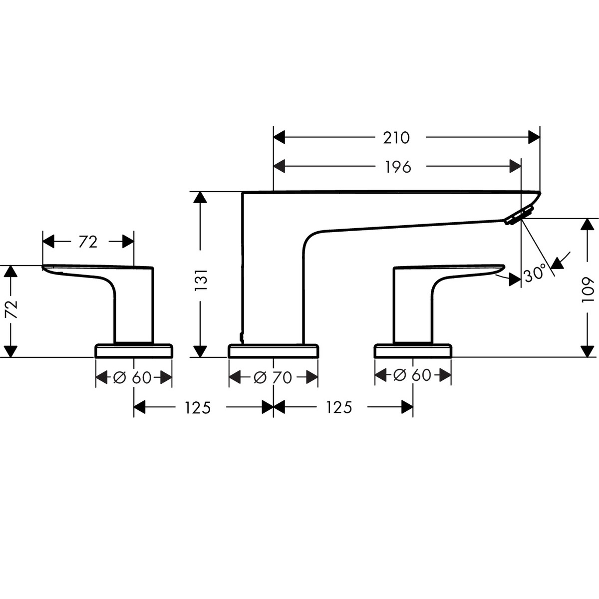 - Придбавається окремо: базовий набір для встановлення змішувача на 3 отвори на край ванни /прихована частина/ (арт. 13233180)