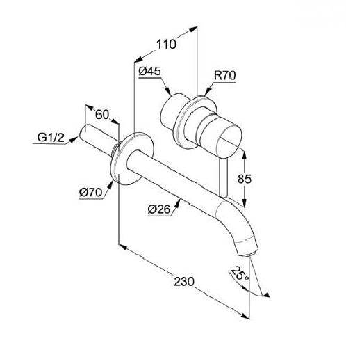 Змішувач для раковини Kludi Bozz (тільки зовнішня монтажна частина).