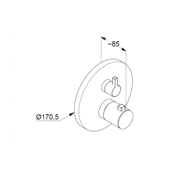 - Ø 170.5 мм, запірний вентиль, перемикач ванна/душ, обмеження температури за 38°C, з додатковим обмежувачем температури 43°C, клас витрати води В