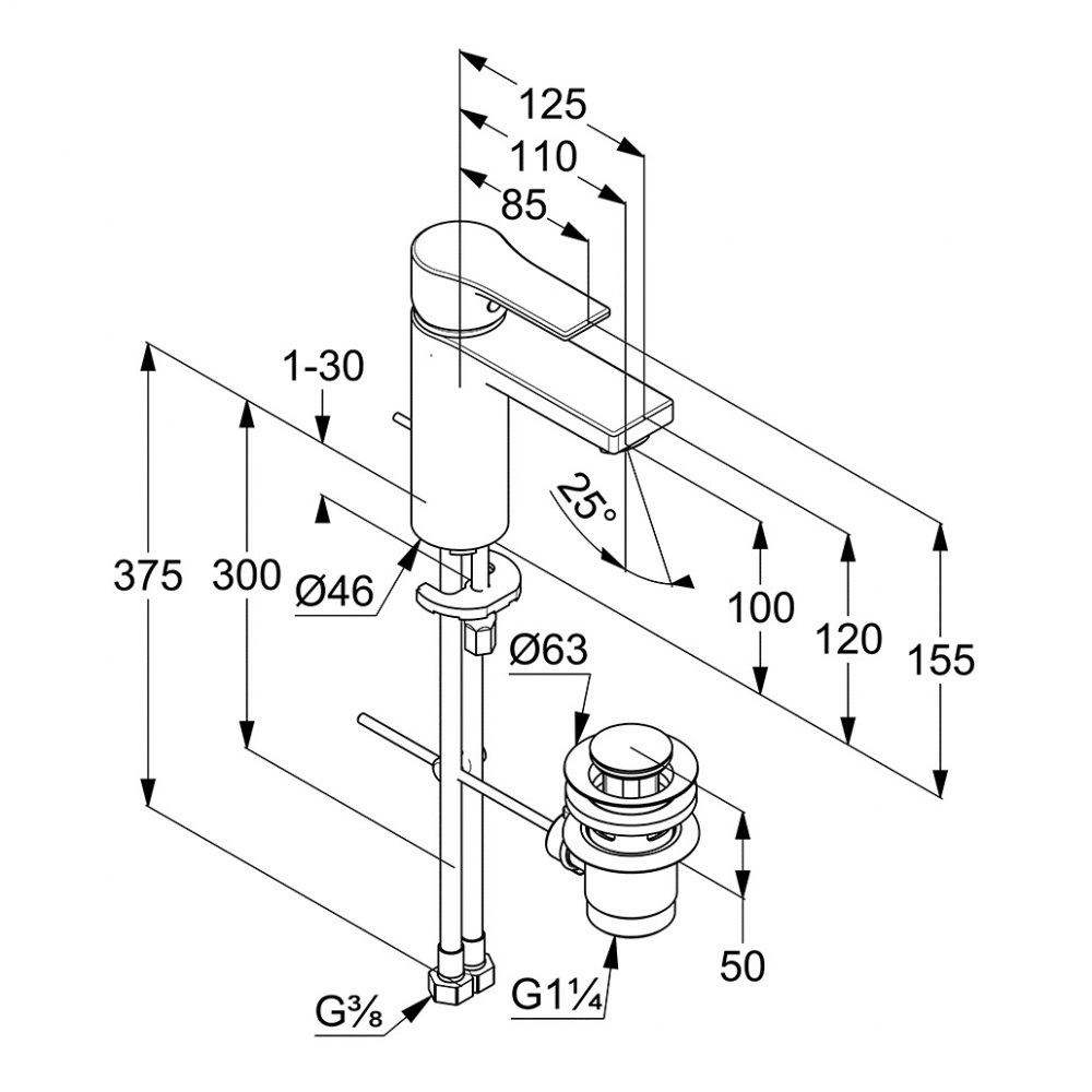 Змішувач для умивальника Kludi Zenta SL 100 донний клапан
