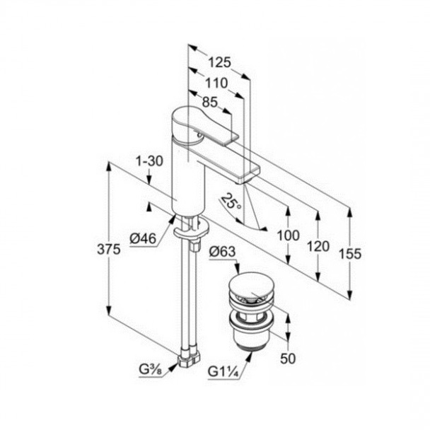 - гнучке підведення G 3/8, система швидкого монтажу
