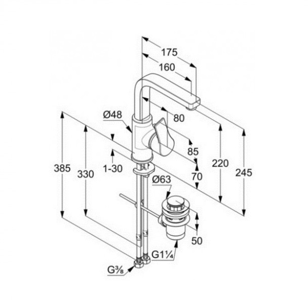 - загальна висота 245 мм, поворотний вилив 360° висота 220 мм, довжина 175 мм
