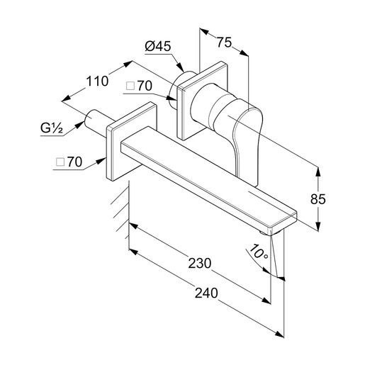 Змішувач настінний для раковини Kludi Zenta SL вилив 230 мм