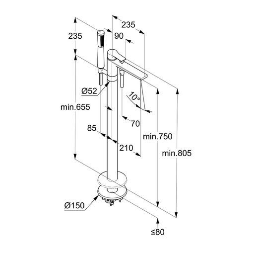 - загальна висота 805 мм, литий вилив: довжина 235 мм, висота 750 мм