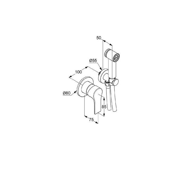 - гігієнічний душ із кнопкою ввімкнення води, не призначений для тривалого перекривання води