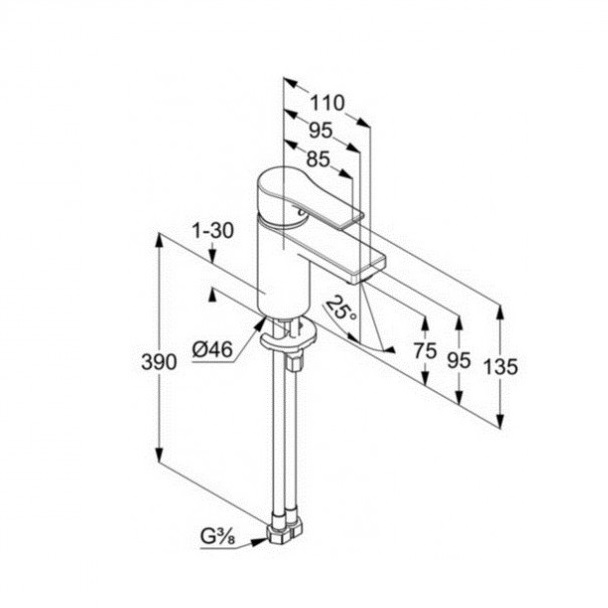 Змішувач для умивальника Kludi Zenta SL 75 без донного клапана