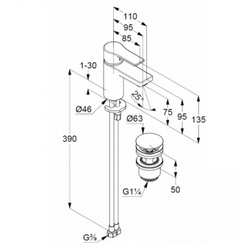 Змішувач для умивальника Kludi Zenta SL 75 донний клапан Push-Open
