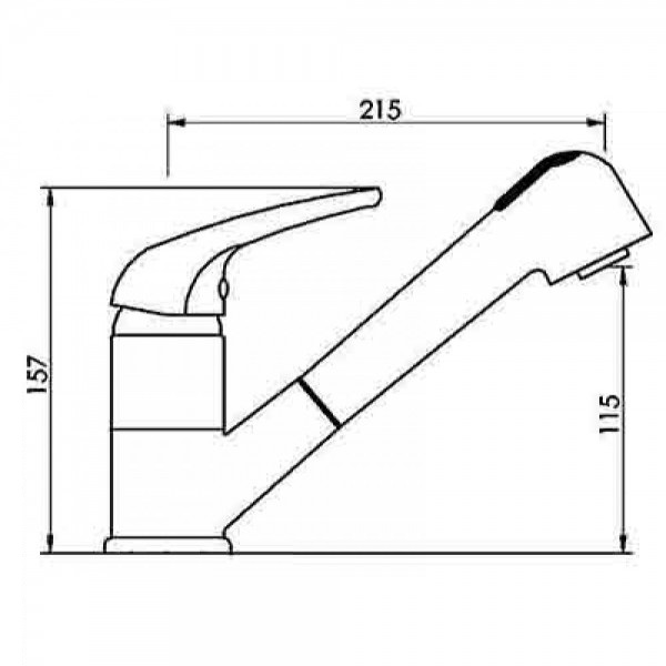 - загальна висота 153 мм, поворотний вилив: висота 115 мм, довжина 215 мм