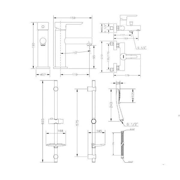 Набір змішувачів для ванни та душу Genebre Oslo 04OSD17TA.