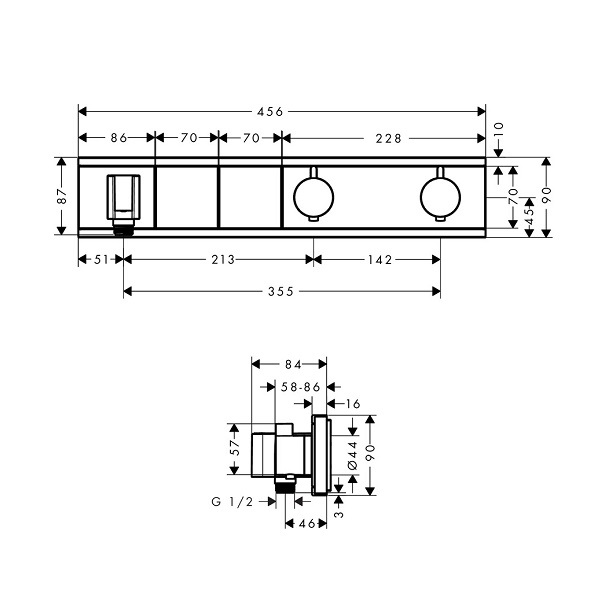 - Загальний розмір панелі 456 х 90 мм, витрата води 26 л/хв.