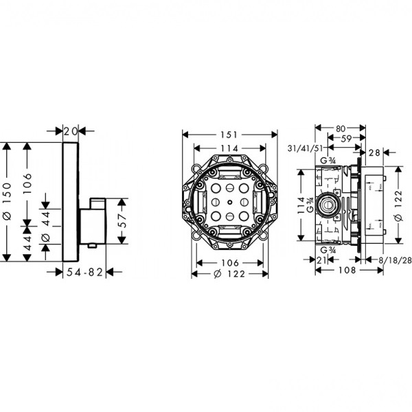 - У комплекті прихована частина Hansgrohe iBox universal (арт. 01800180)
