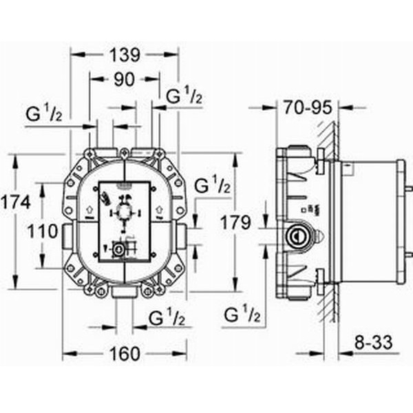 Прихована частина змішувача-термостата для ванни і душу Grohe Rapido T, необхідна комплектація верхньою видимою частиною.