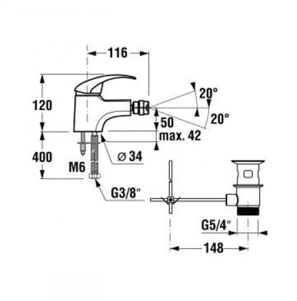 - загальна висота змішувача 120 мм, вилив: висота 50 мм