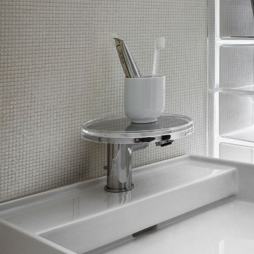 Змішувач для раковини Laufen Kartell, з прозорою поличкою.