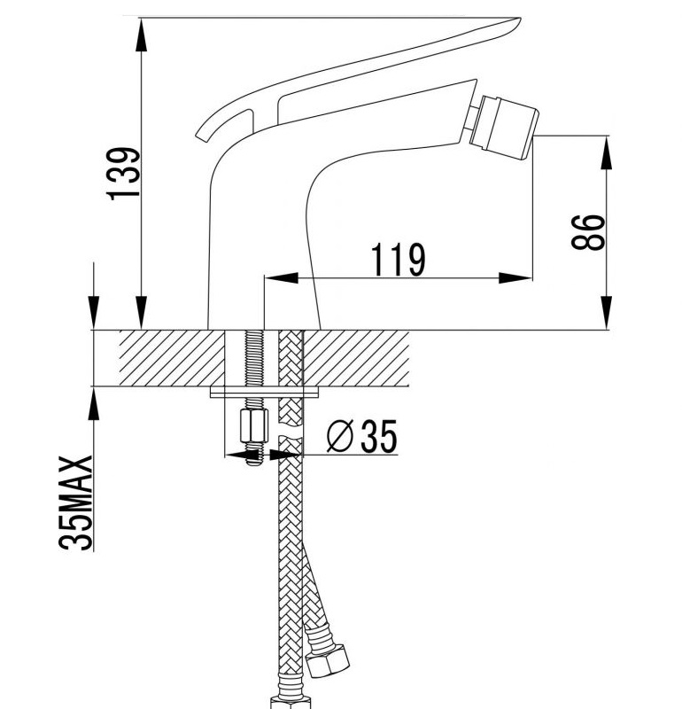 - гнучке підведення завдовжки 30 см із гайкою ½ дюйма
