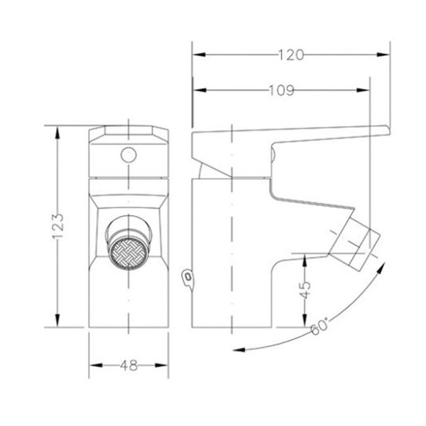 - - вилив: висота 45 мм, загальна висота 123 мм