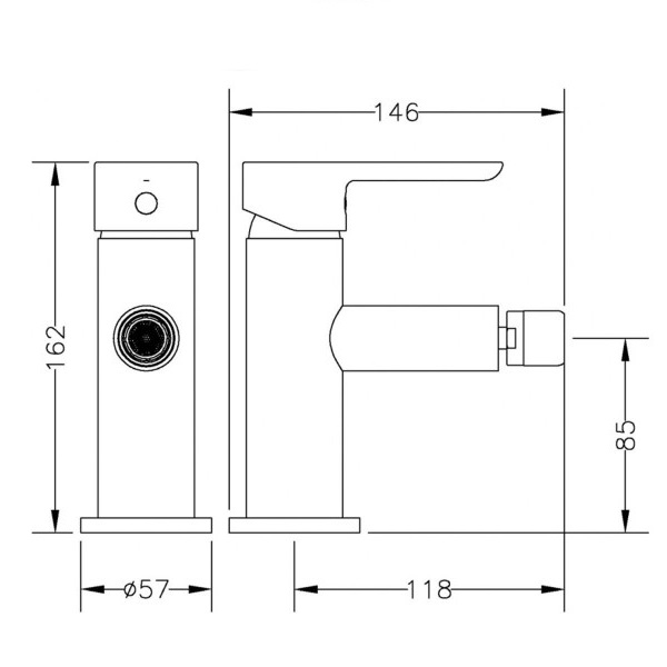 - - вилив: висота 85 мм, довжина 118 мм, загальна висота 162 мм
