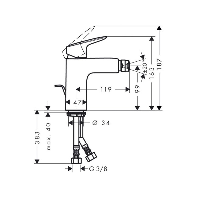 - - загальна висота 163 мм, вилив: висота 99 мм