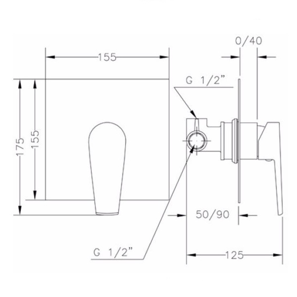 Вбудований змішувач для душу Genebre Klip 64115164566,прихована частина змішувача в комплекті.