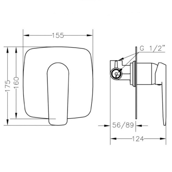 Вбудований змішувач для душу Genebre Kode 62115314566, прихована частина змішувача в комплекті.