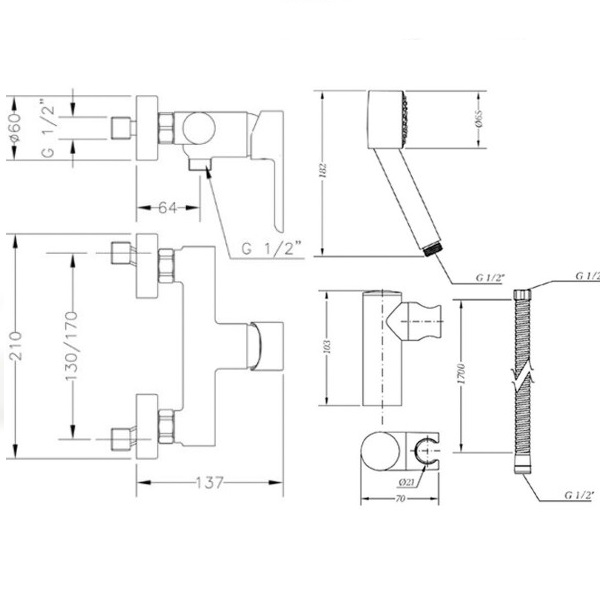 Змішувач для душу Genebre Oslo 65110194566, з душовим гарнітуром.