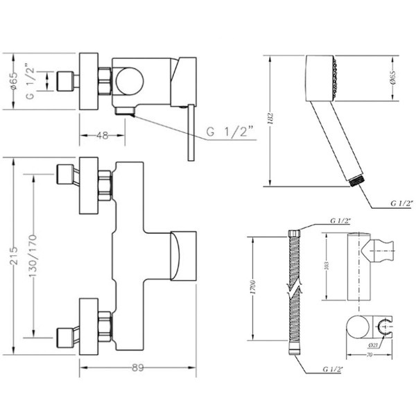 Змішувач для душу Genebre Tau2 65110294566, з душовим гарнітуром.