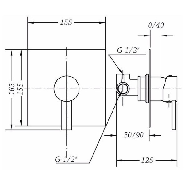 Вбудований змішувач для душу Genebre Tau2 65115294566,прихована частина змішувача в комплекті.