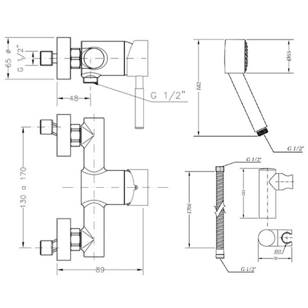 Змішувач для душу Genebre Tau 65110184566, з душовим гарнітуром.