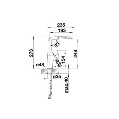 - загальна висота 273 мм, поворотний вилив 360°: висота 248 мм, довжина 193 мм
