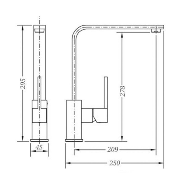 - - поворотний вилив 360°: висота 278 мм, довжина 209 мм, загальна висота 295 мм
